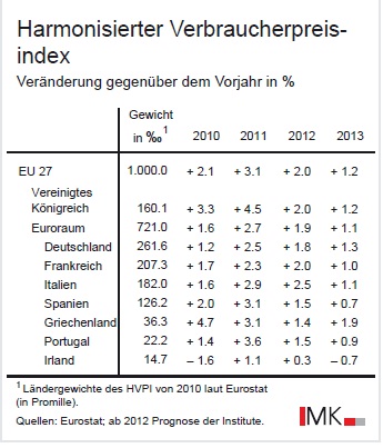 Laut IMK, OFCE und WIFO steigen die Verbraucherpreise in diesem Jahr um 1,8 Prozent und 2013 um 1,3 Prozent. Die erste Tariferhöhung soll rückwirkend zum 1. März erfolgen und 3,5 Prozent betragen; im Januar und im August 2013 sollen dann jeweils Steigerungen von 1,4 Prozent folgen (die bisher in vielen Medien verbreiteten, jeweils 1,3 Prozent für 2013 sind laut ver.di falsch).