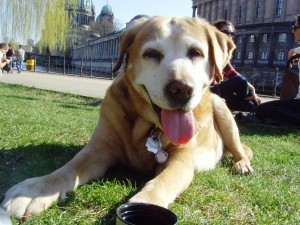 Und was hat Queeny seitdem nicht alles gesehen! Von München nach Bregenz und weiter durch die Schweiz sind wir gewandert, haben gemeinsam in so berühmten Klöstern wie Kloster Andechs Unterkunft gefunden. Und dann, 2010, die Wanderung durch elf Bundesländer, alles zu Fuß, bei Wind und Wetter, und vieles vieles mehr. In zwei Großstädten, Hamburg und Berlin, hat sie brav ihre Hundesteuer ent- und ihre Geschäfte verrichtet, und mit ihrem unerhörten Appetit ganz nebenbei die Gehwege von allem möglichen menschlichen Unrat befreit. Andere haben Google, ich habe Queeny, garantiert Datensicher, nichts von dem, was sie einmal gefunden und aufgelesen hat, gibt sie wieder frei – jedenfalls nicht in einer Form, in der sie für andere noch nutzbar wäre. Und die vielen Menschen, mit denen sie mich erst bekannt gemacht hat, durch ihr buchstäblich ansprechendes Wesen. Ja, Carl Zuckmayr hatte recht. So ist es: Ein Leben ohne Hund ist ein Irrtum. Herzlichen Glückwunsch Queeny!