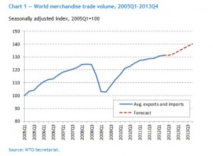 Entwicklung des Welthandelsvolumens 2005 bis 2013 (Prognose der WTO) (Zur Vergrößerung auf Graphik klicken.)