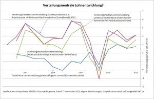 Verteilungsneutrale Lohnentwicklung in Deutschland? - Fehlanzeige! (Zur Vergrößerung auf Graphik klicken.)