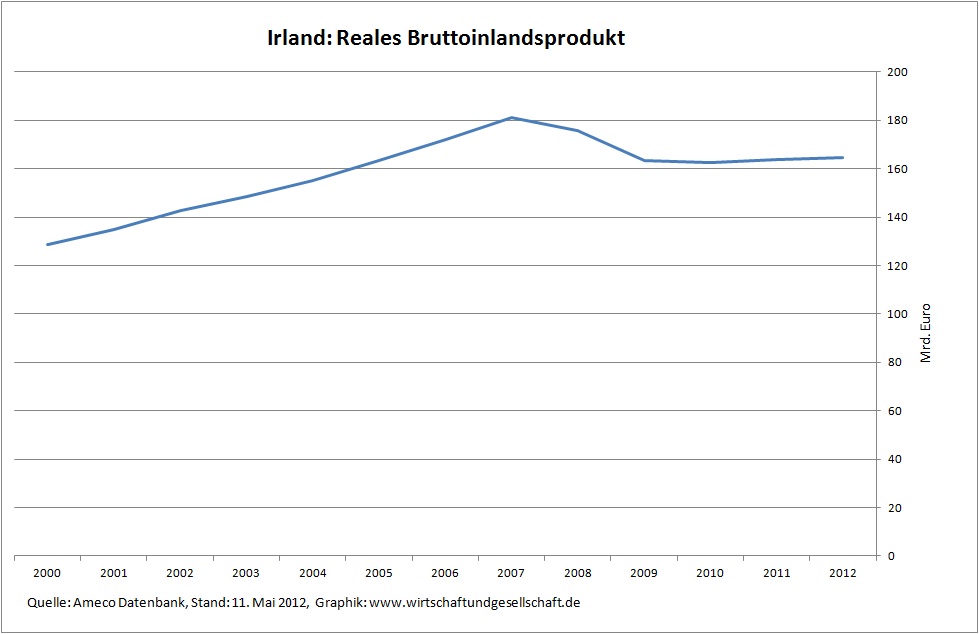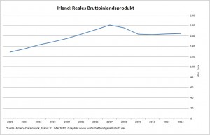 Entwicklung des Bruttoinlandsprodukts in Irland, 2000 bis 2012 (Zur Vergrößerung auf Graphik klicken.)