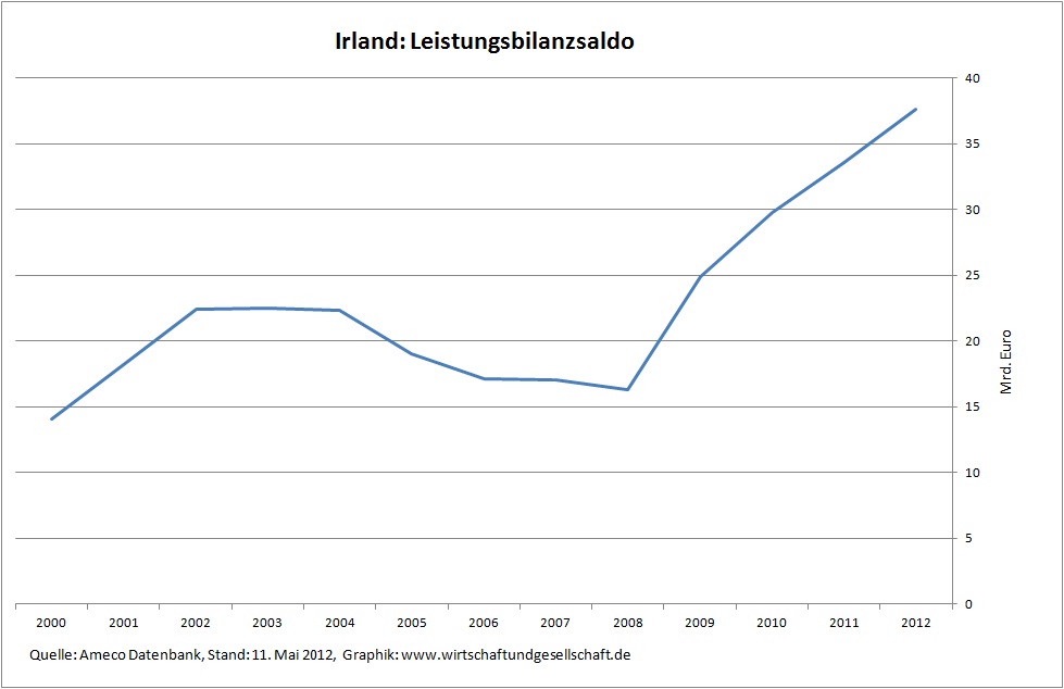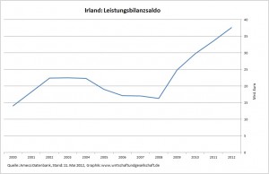 Entwicklung des Leistungsbilanzsaldos in Irland, 2000 bis 2012 (Zur Vergrößerung auf Graphik klicken.)