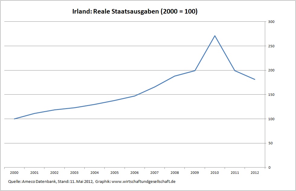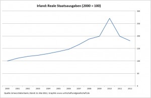 Entwicklung der realen Staatsausgaben in Irland, 2000 bis 2012 (Zur Vergrößerung auf Graphik klicken.)