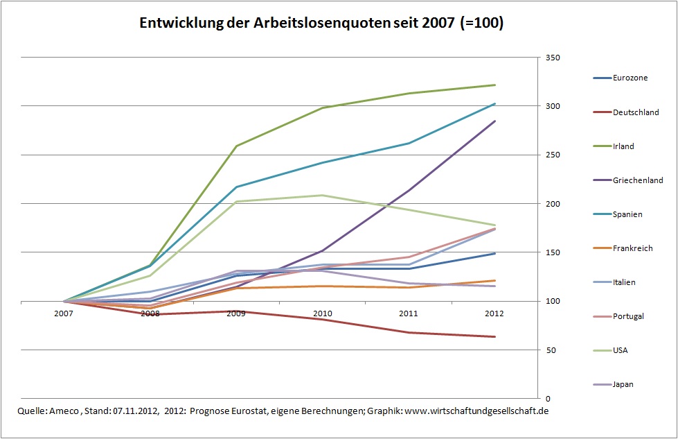 “Die Fakten in der Euro-Zone sprechen für sich: Die Haushaltsdefizite sinken. Die Wettbewerbsfähigkeit steigt. Die wirtschaftlichen Ungleichgewichte gehen zurück. Verbesserungen bei der Wettbewerbsfähigkeit erleben wir vor allem in Griechenland und in Irland. Dort sind die Lohnstückkosten seit 2009 um jeweils mehr als zehn Prozent gesunken. In Spanien und Portugal gingen sie um sechs Prozent zurück.