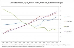 The consequences of a downward spiral in ULC are shown by Japan. For years now, Japan has vainly tried to escape deflation.
