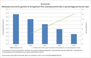Eurozone: Necessary economic growth to bring down the unemployment rate 2 percentage points per year (click to enlarge chart)