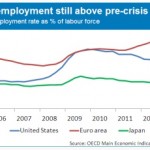 Anders als die deutschen “Top-Ökonomen” und die EU-Kommission spricht die OECD klar den Zusammenhang von Wachstum und Beschäftigung an. Und es sieht auch nach ihrer Einschätzung düster aus.