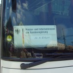 Ich selbst wäre nicht auf ihn aufmerksam geworden. Es war meine vierbeinige Kollegin Hilka, die plötzlich nach rechts vom Gehweg auf die Straße scherte, sich direkt vor den Bus und unter das Namensschild des früheren Politikers setzte und einen See hinterließ, der mich befürchten ließ, dass nun auch Berlin von einer Flutwelle bedroht würde. Erst als sich mein verängstigter Blick langsam von dem Gewässer löste und nach oben richtete, erkannte ich, dass Hilka hier wieder einmal eine politische Protestnote hinterlassen hatte. Und ich verstand sofort: Der Bus war offensichtlich traditionell angetrieben, Diesel wahrscheinlich, und das geziemte sich nun wirklich nicht für einen ehemaligen, wenn auch – um im Bild zu bleiben – gestrandeten Umweltminister.