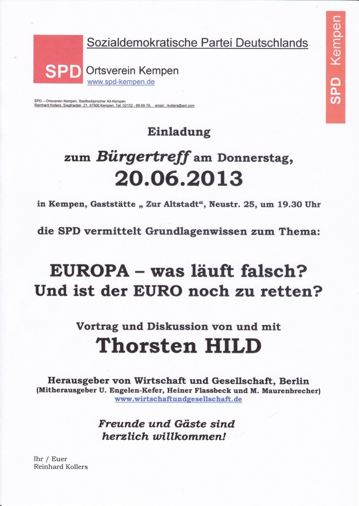Am 20. Juni referiere und diskutiere ich beim Bürgertreff in Kempen zur Frage: