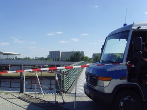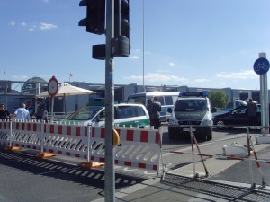 Vor der Kronprinzenbrücke. Feldjäger und Polizei versperren mir den Weg. Zur Vergrößerung auf Bild klicken.