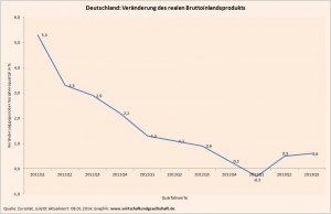 Eine Wirtschaft aber, die schon 2012 real nur um 0,7 Prozent gewachsen ist, und deren Zuwachsraten seit 2011 so deutlich gesunken sind, wie es die Graphik oben veranschaulicht, kann niemals Grundlage dafür sein, zu schreiben: “…in den Zeiten guter Konjunktur…”