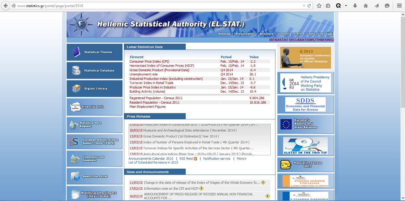 Wie die offizielle Statistik jedoch zeigt ist das Wachstum der griechischen Volkswirtschaft unverändert negativ. Das kleine reale Plus im zweiten und dritten Quartal vergangenen Jahres haben wir frühzeitig als Ergebnis der Deflation entlarvt (siehe dazu hier und hier). Nach den zuletzt ausgewiesenen, vorläufigen Daten der Volkswirtschaftlichen Gesamtrechnung war im vierten Quartal 2014 auch das reale Wachstum negativ. Die Deflation lag in dem zuletzt ausgewiesenen Monat Februar 2015 bei -2,2 bzw. -1,9 Prozent.