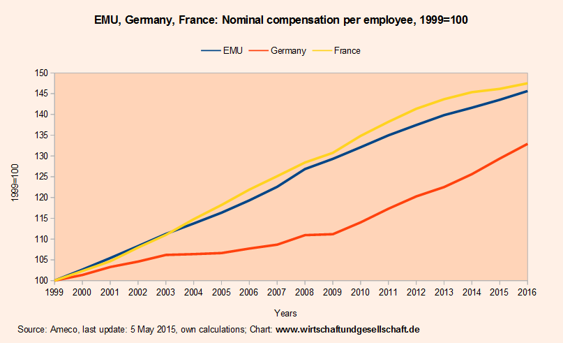 Today the German Federal Statistical Office (Destatis) published a press release on agreed earnings in Germany and in France in 2014 which perfectly demonstrates how even institutions supposed to give pertinent information are missguide their readers on developments in the European Monetary Union (EMU) and the core behind the Euro crisis. However, it motivates to get things right once again.