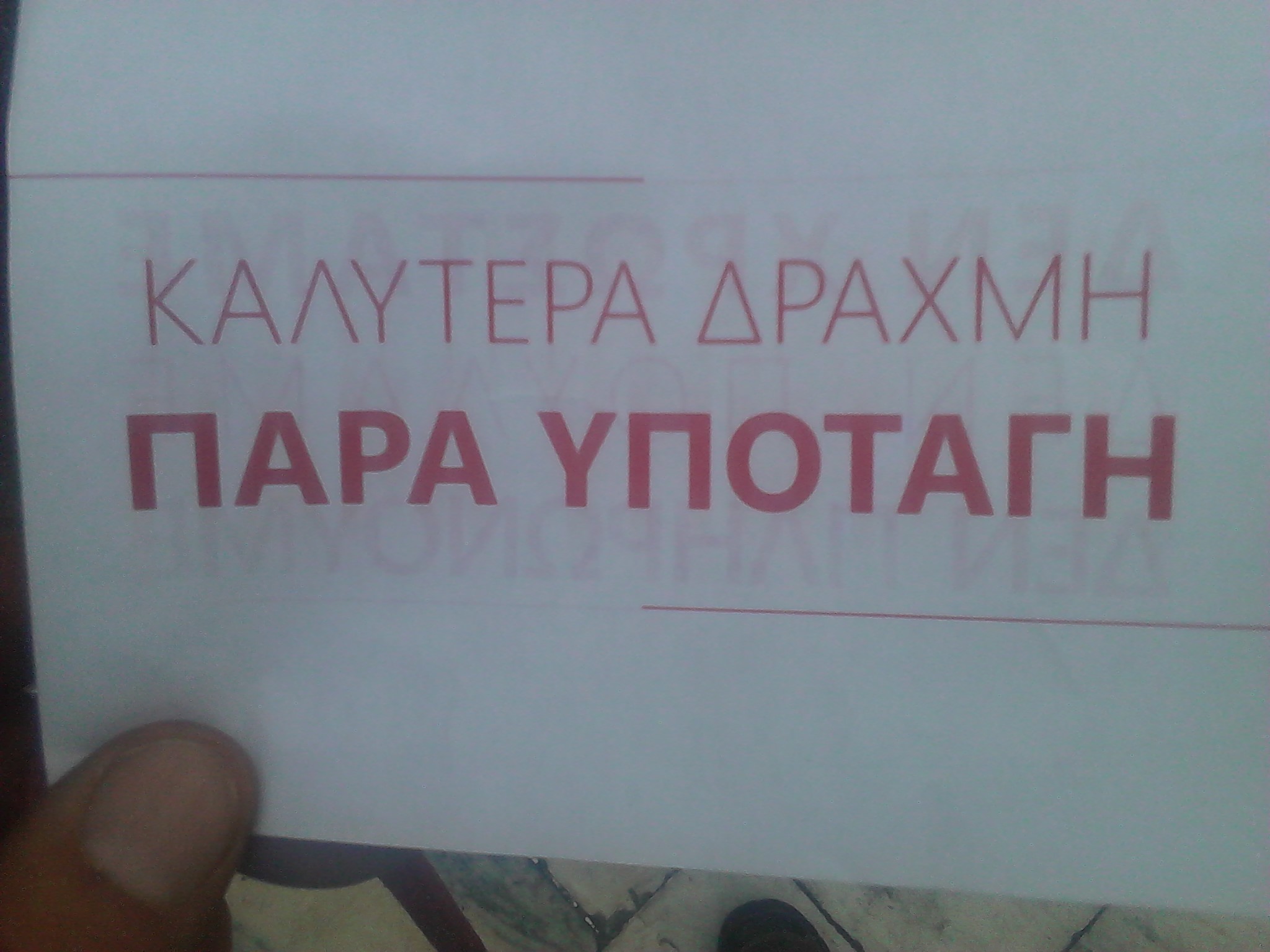 Am frühen Abend vor dem Parlamentsgebäude. Eine Menschenmenge, die sich schnell verdichtet. Ich hebe ein Flugblatt auf. Auf der einen Seite steht: “Lieber die Drachme, als sich zu ergeben.” Auf der anderen Seite steht: “Wir schulden nichts. Wir zahlen nichts. Wir verkaufen nichts.” Ich komme mit drei jungen Menschen ins Gespräch, alle aus Athen. Sie haben ein erstaunliches Wissen über die Krise und eine erstaunlich klare Meinungsbildung, auch eine sehr differenzierte Haltung gegenüber der Regierung.