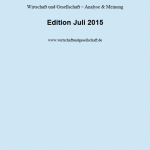 Jeden Monat ein ganzes Buch, genauer: ein ganzes E-Book. Immer mehr Menschen lesen Texte mit einem elektronischen Lesegerät. Die meisten Menschen lesen laut Umfragen darüber hinaus längere Texte immer noch am liebsten in gedruckter Form. Wirtschaft und Gesellschaft – Analyse & Meinung (WuG) möchte diesen Vorlieben gern entgegenkommen und gibt seit August 2014 am Ende eines jeden Monats eine Edition aller im Monat veröffentlichten Beiträge heraus (außer der in “WuG unterwegs”), die im pdf.-Format erscheint. AbonnentInnen von WuG können diese Edition mit ihrer für den Monat gültigen PIN lesen und herunterladen: Edition Juli 2015. Über 80 Seiten Analyse & Meinung. Nicht-AbonnentInnen können die Edition für 10 Euro erstehen und bekommen diese dann per E-Mail zugesendet. Bestellungen an: info@wirtschaftundgesellschaft.de.